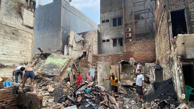 Sisa Kebakaran di Karet Kuningan: Bau Hangus Menyengat, Puing Berserakan Jangkauan Tanggerang — Sisa Kebakaran…